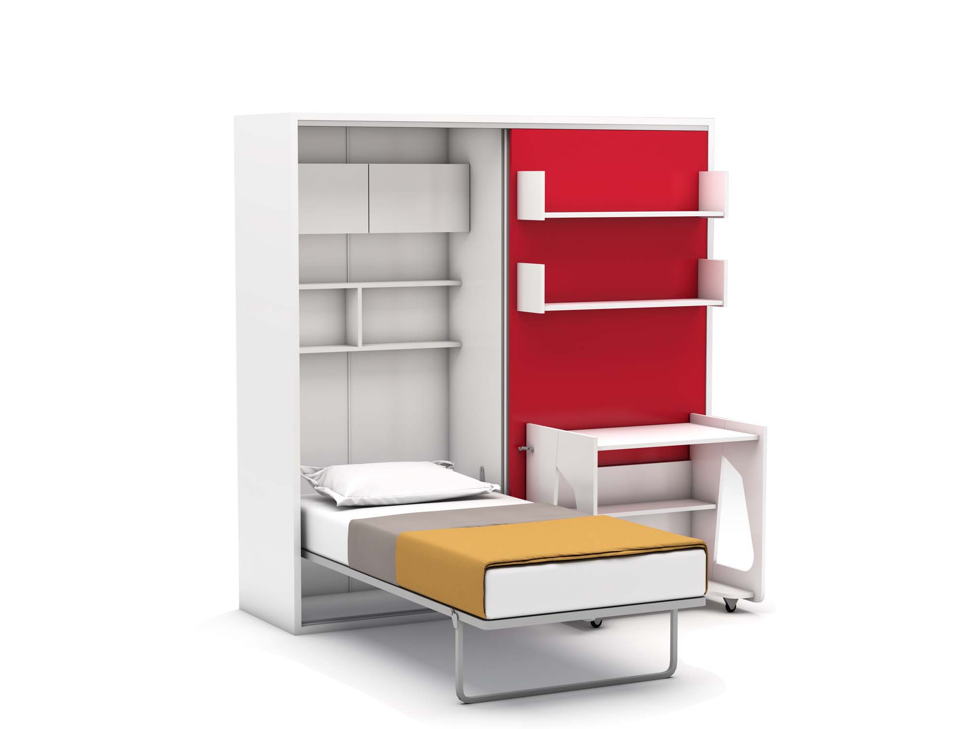 De eenpersoons bedkast Studio is een volledige tienerkamer over een 2 m lange muur.